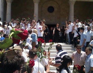 Alep - Mercredi 20 Juin 2012 - C'est en l'Église du Prophète Saint-Élie à Alep qu'ont été célébrées, hier mardi, les funérailles de Mme Marina Chehworo épouse et veuve du Père Georges Chahworo.
